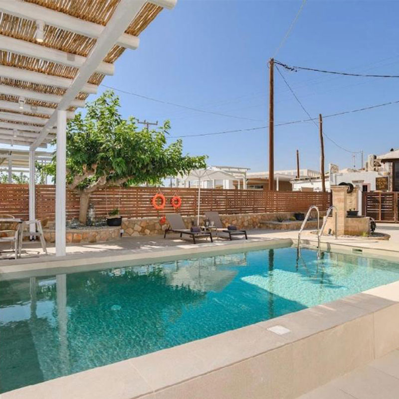 Just a 3-minute walk from Pefki Beach, 5 SENSES offers elegant accommodation in a relaxed seaside setting. The villa features three bedrooms and three bathrooms, ideal for families or groups seeking comfort and privacy.